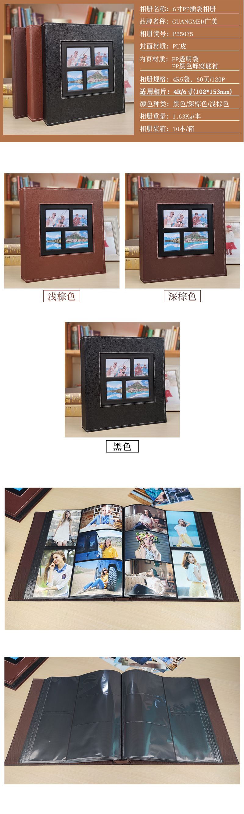 600张6寸照片收纳册封面开窗螺丝装PP插袋相册