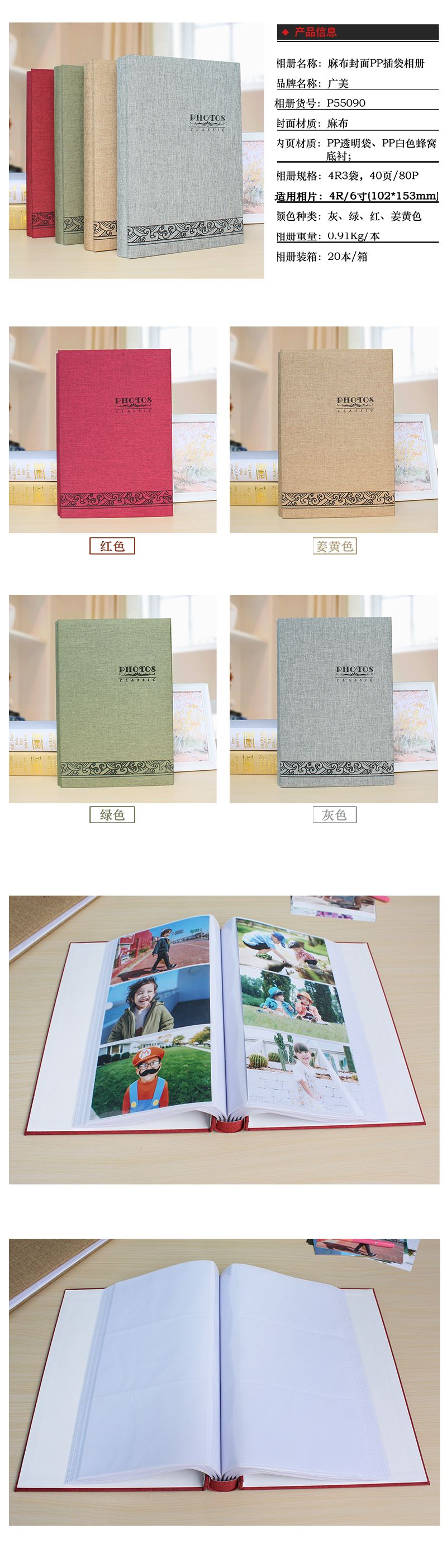 4R3袋40页可装240张相片螺丝装PP插袋相册