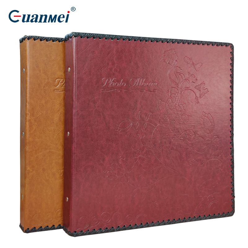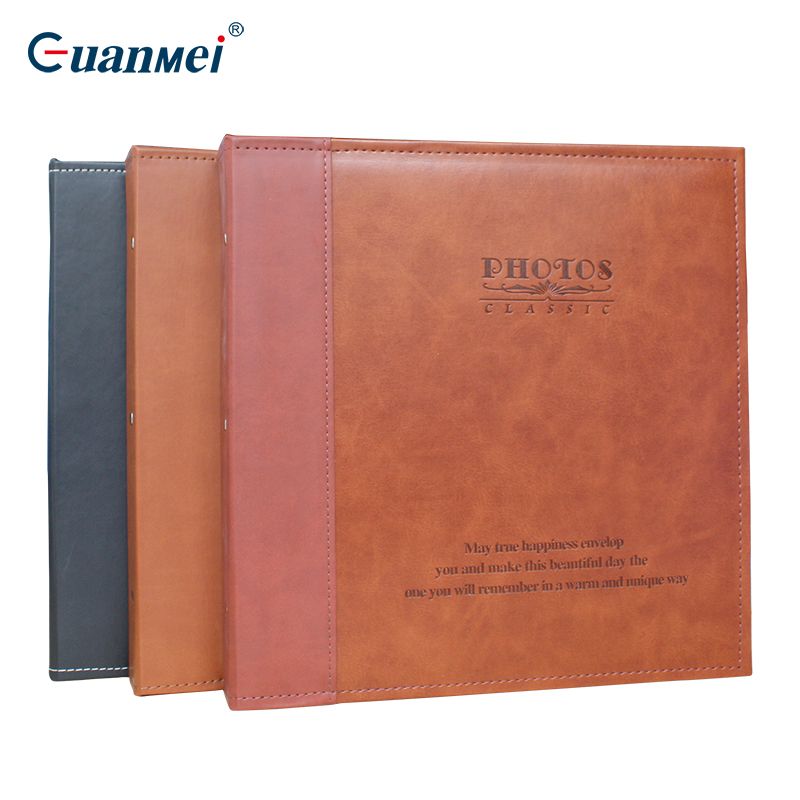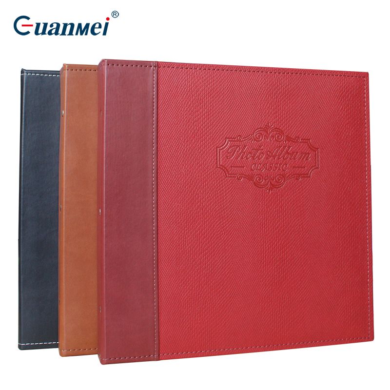 螺丝装牛颈纹PU皮封面12寸覆膜粘胶相册20张(带盒)